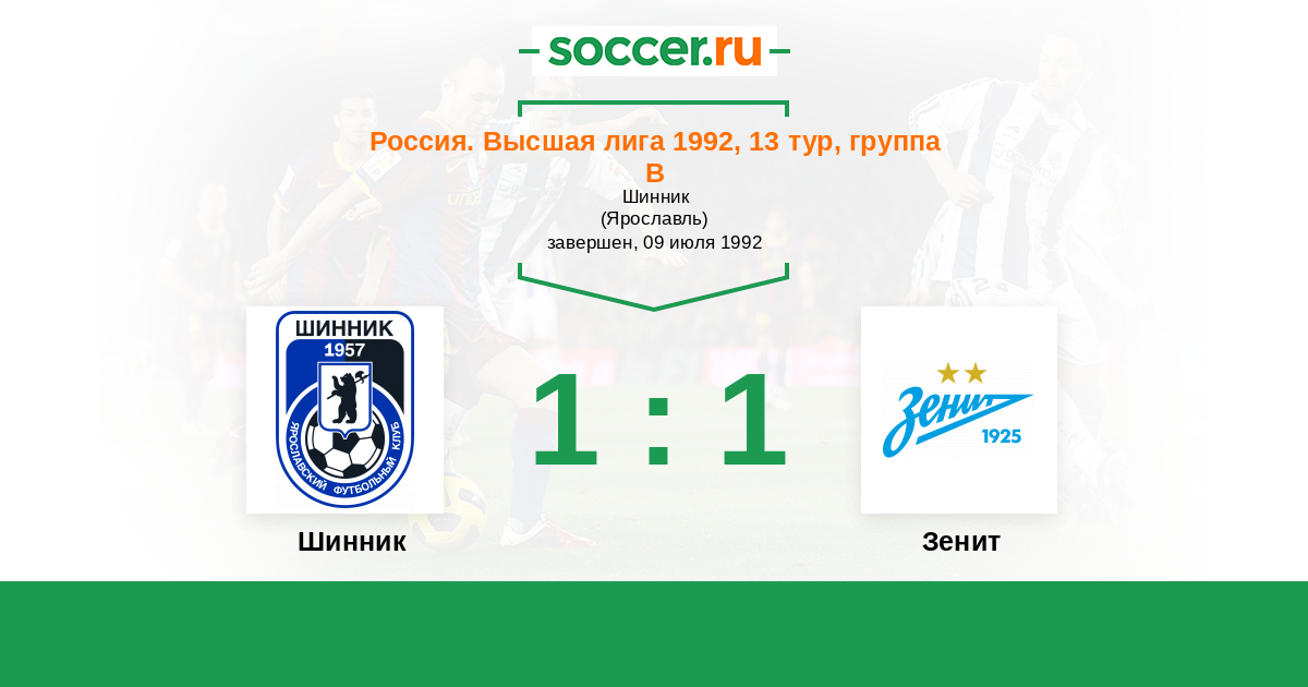 Шинник - Зенит: обзор матча 9 июля 1992