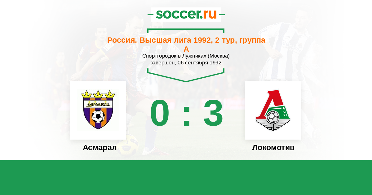Асмарал - Локомотив: обзор матча 6 сентября 1992