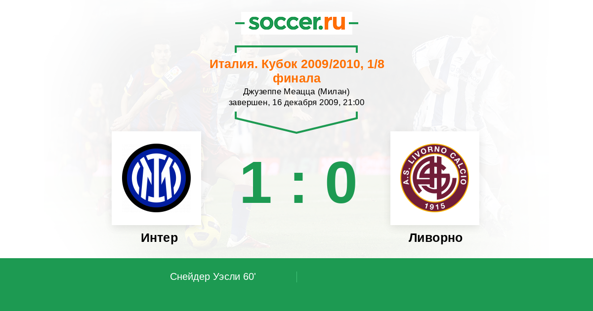 Интер - Ливорно: обзор матча 16 декабря 2009