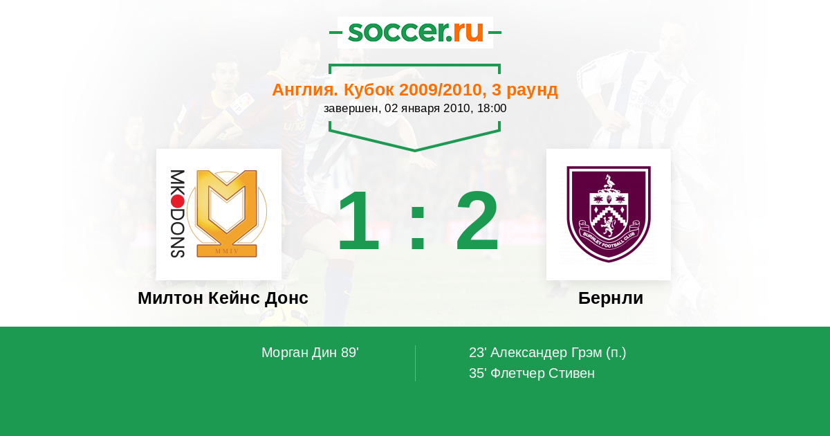 Милтон Кейнс Донс - Бернли: обзор матча 2 января 2010