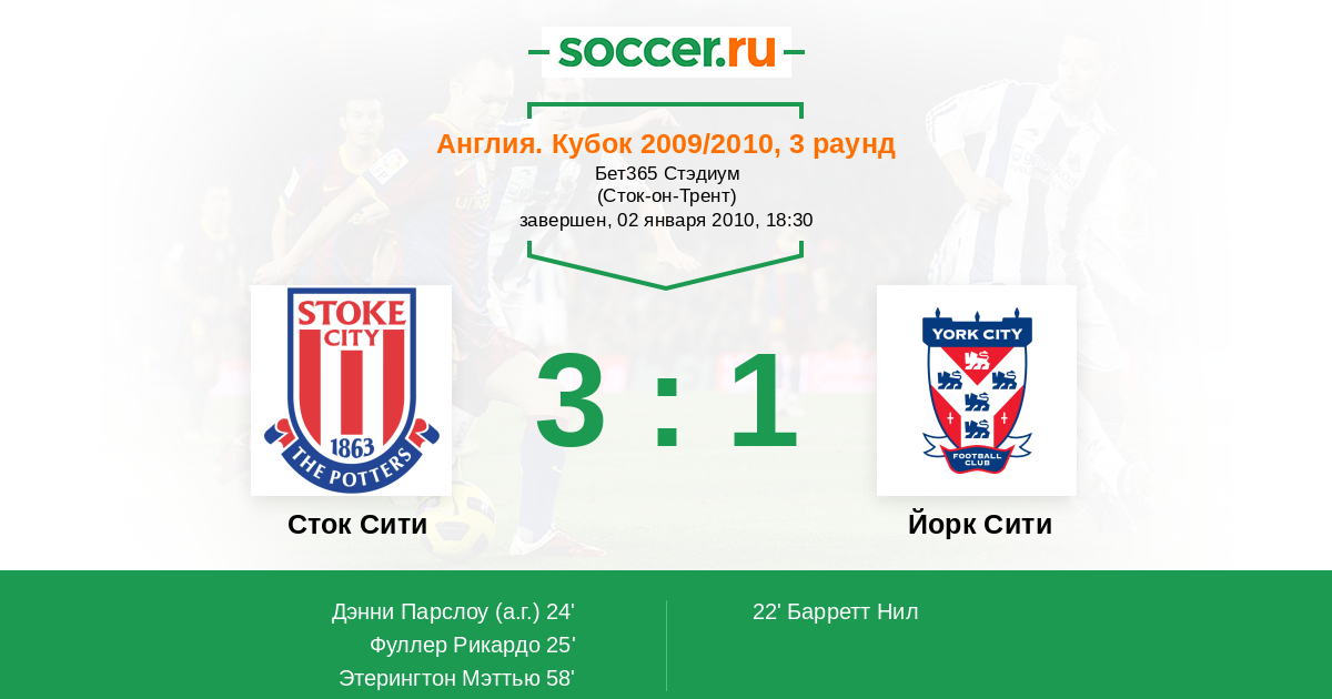 Сток Сити - Йорк Сити: обзор матча 2 января 2010