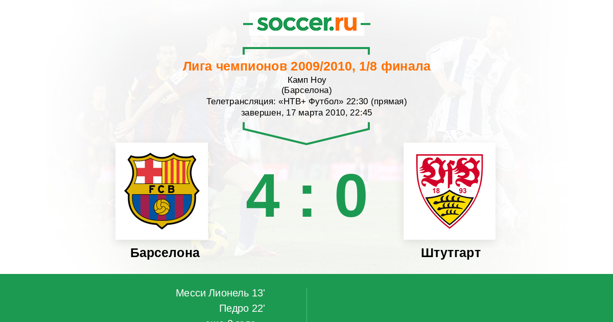 Барселона - Штутгарт: обзор матча 17 марта 2010