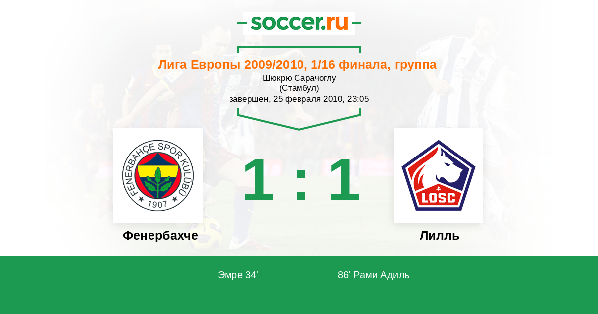 Фенербахче - Лилль: обзор матча 25 февраля 2010