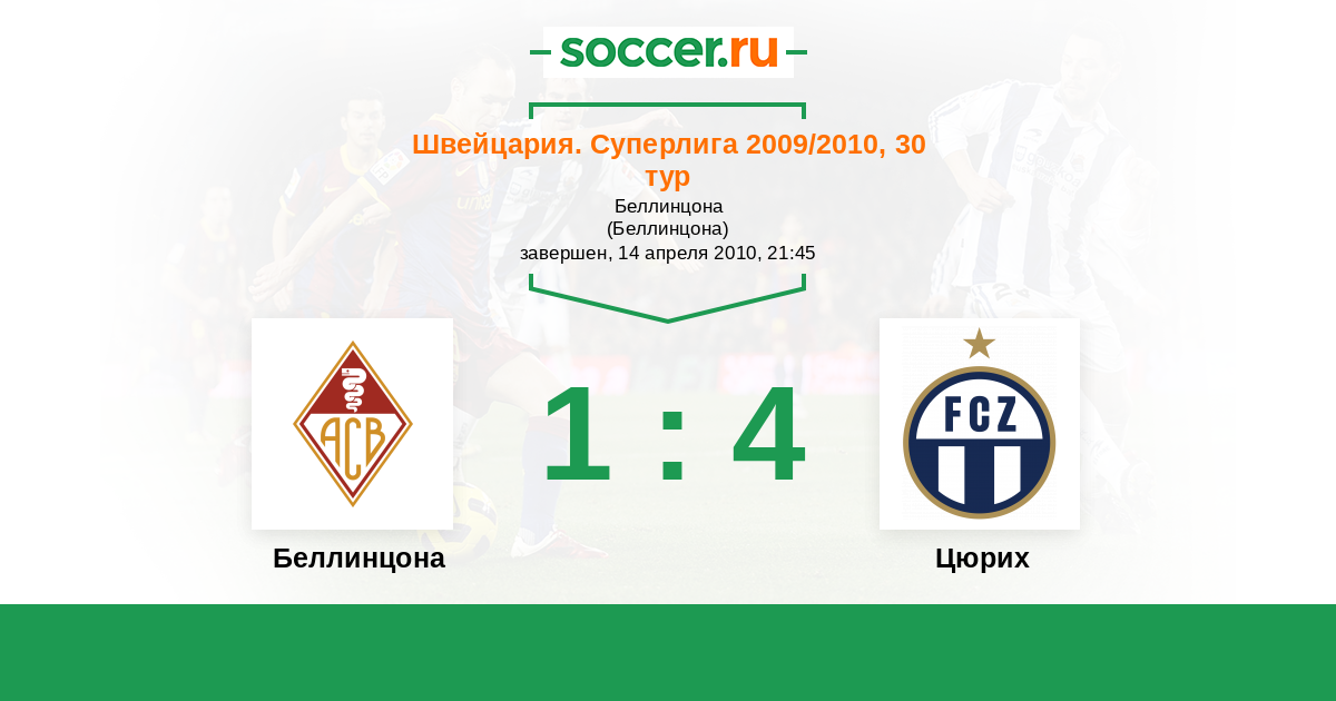 Беллинцона - Цюрих: обзор матча 14 апреля 2010