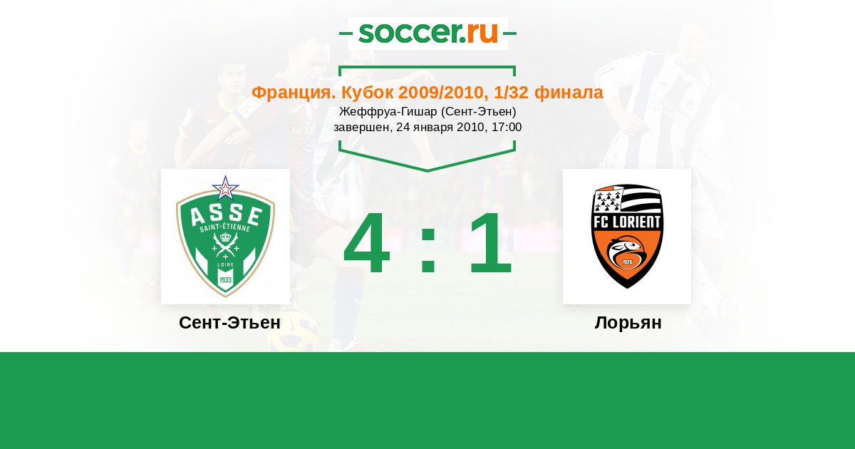 Сент-Этьен - Лорьян: обзор матча 24 января 2010