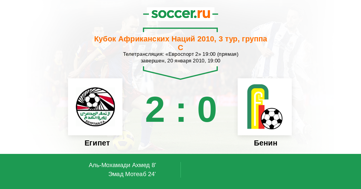 Египет - Бенин: обзор матча 20 января 2010