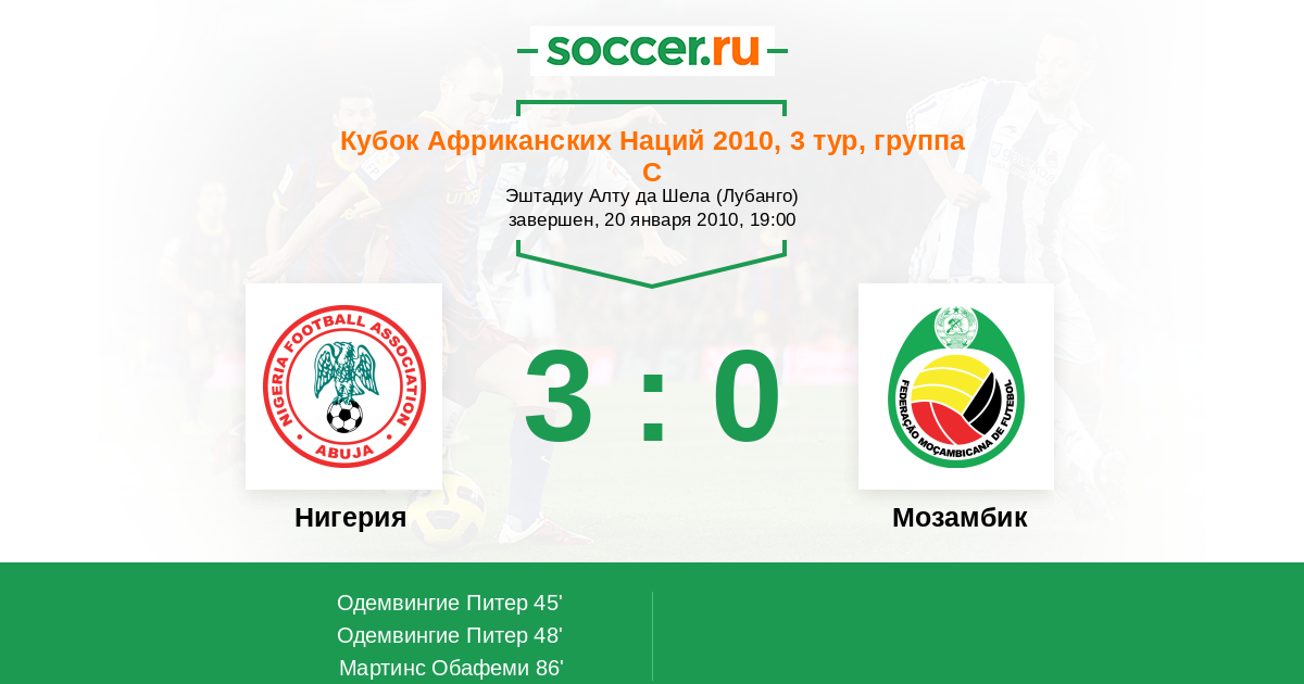 Нигерия - Мозамбик: обзор матча 20 января 2010