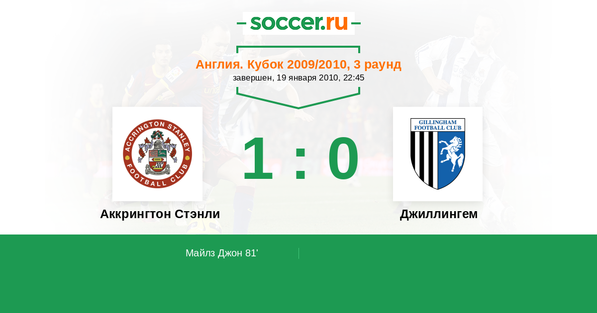 Аккрингтон Стэнли - Джиллингем: обзор матча 19 января 2010