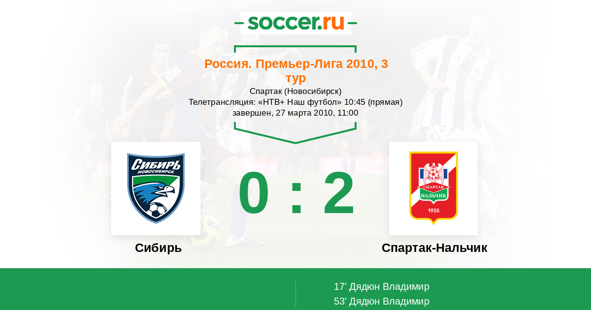 Сибирь - Спартак-Нальчик: обзор матча 27 марта 2010