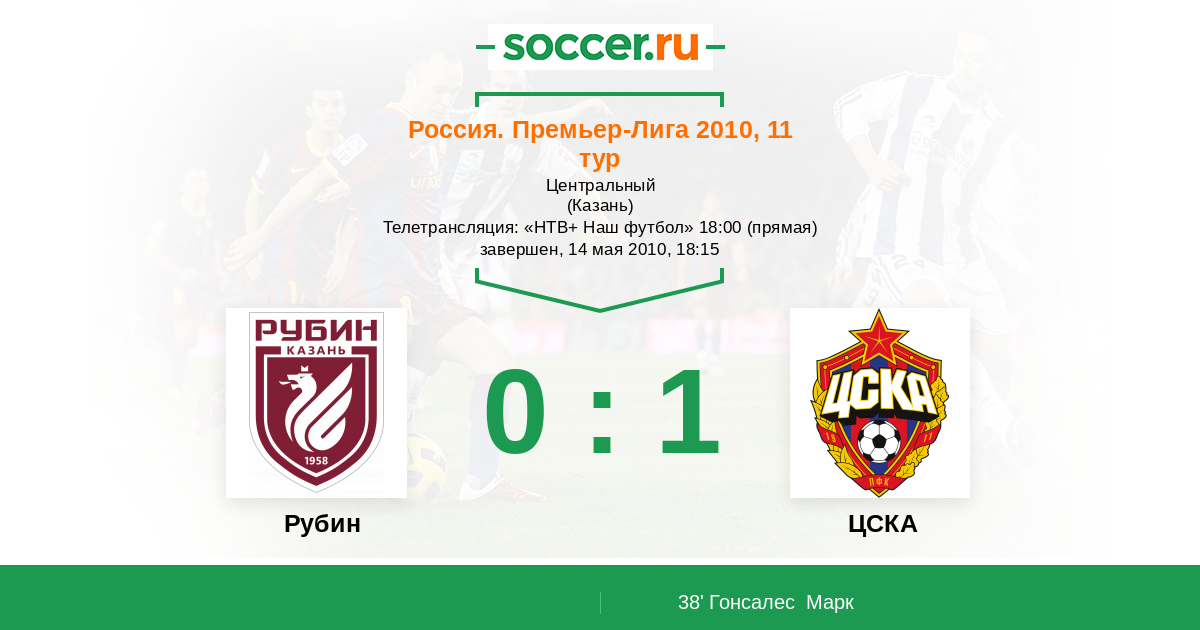 Рубин - ЦСКА: обзор матча 14 мая 2010