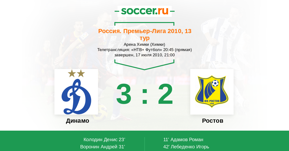 Динамо - Ростов: обзор матча 17 июля 2010