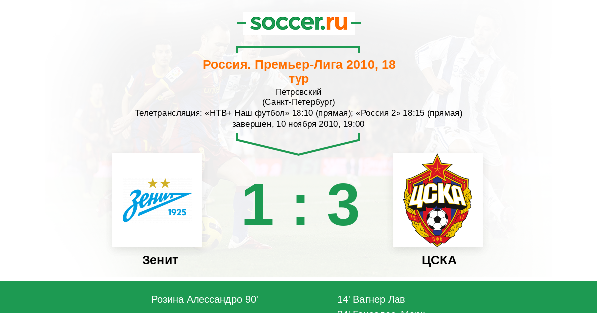 Зенит - ЦСКА: обзор матча 10 ноября 2010