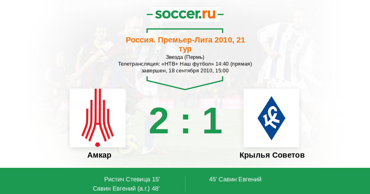 Амкар - Крылья Советов: обзор матча 18 сентября 2010