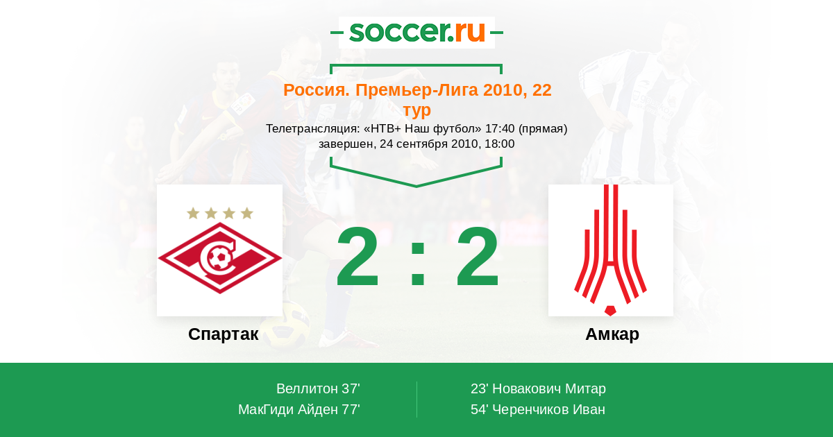 Спартак - Амкар: обзор матча 24 сентября 2010