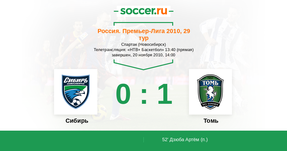 Сибирь - Томь: обзор матча 20 ноября 2010