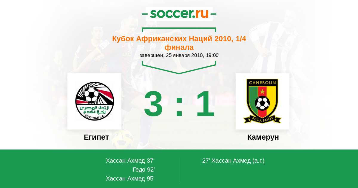 Египет - Камерун: обзор матча 25 января 2010