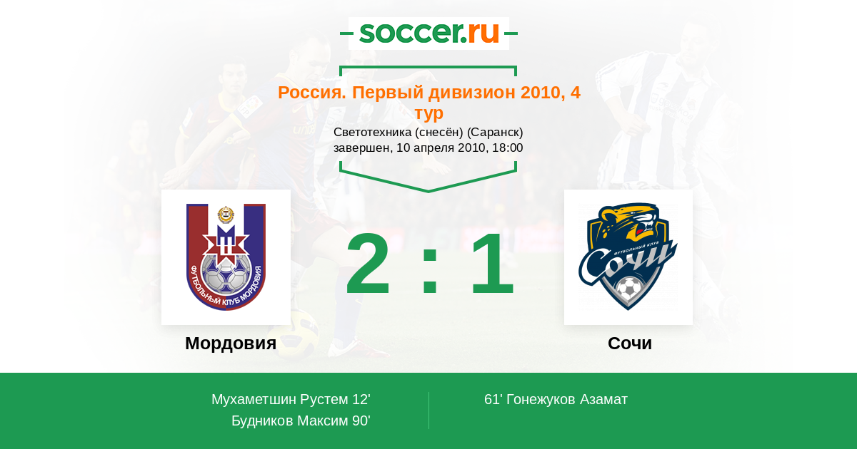 Мордовия - Динамо: обзор матча 10 апреля 2010
