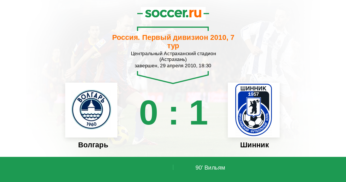 Волгарь-Газпром - Шинник: обзор матча 29 апреля 2010