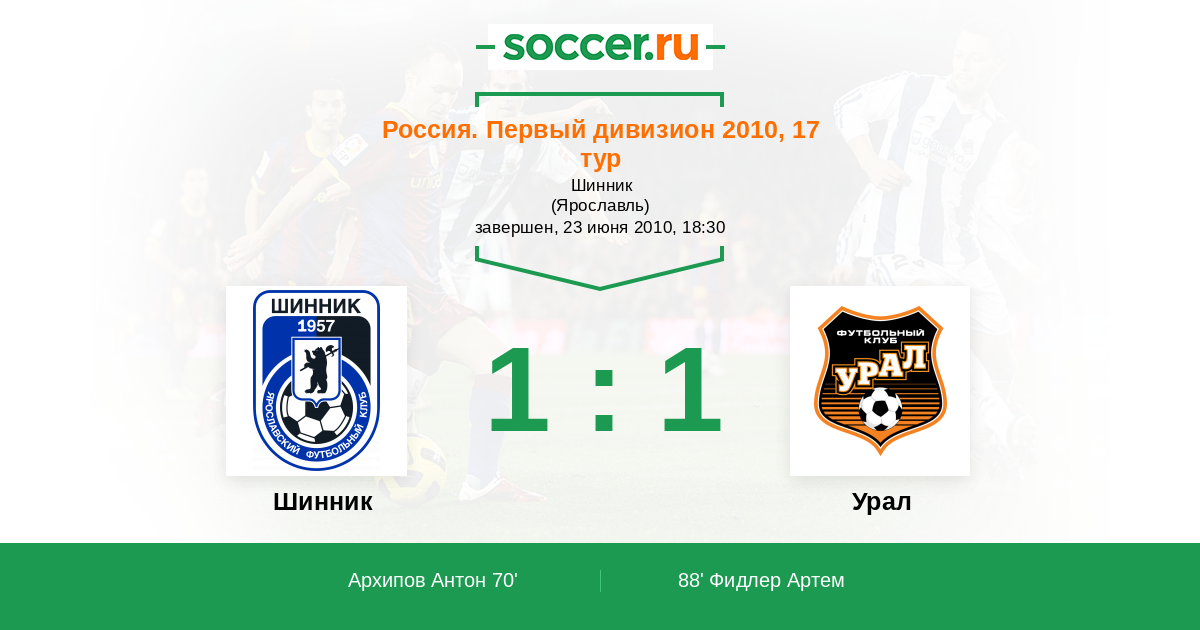 Шинник - Урал: обзор матча 23 июня 2010