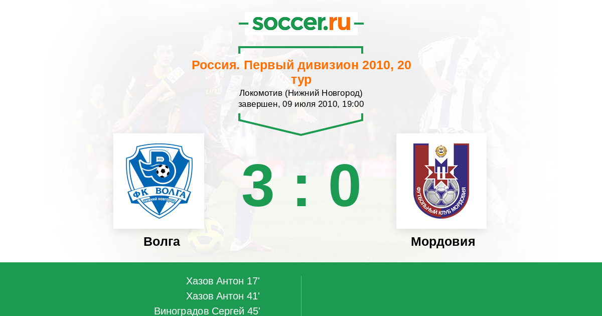 Волга - Мордовия: обзор матча 9 июля 2010