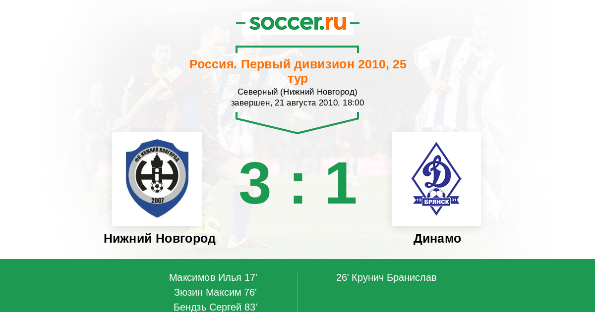 Нижний Новгород - Динамо Брянск: обзор матча 21 августа 2010