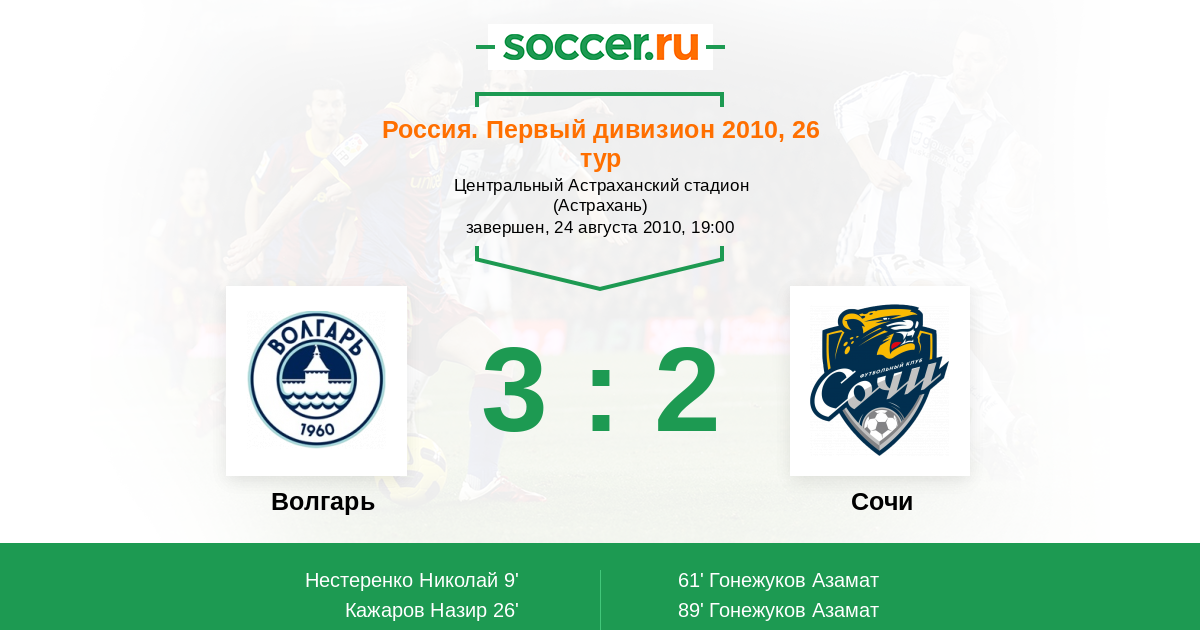 Волгарь-Газпром - Динамо: обзор матча 24 августа 2010