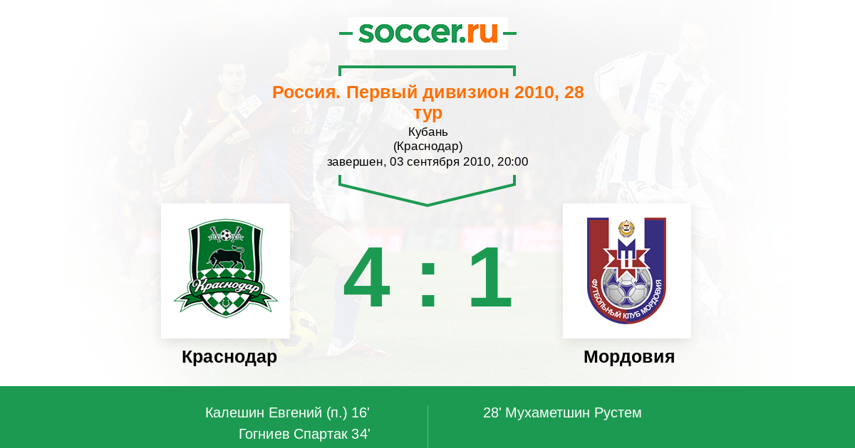 Краснодар - Мордовия: обзор матча 3 сентября 2010