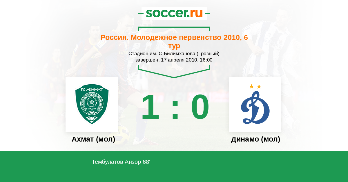 Терек (мол) - Динамо (мол): обзор матча 17 апреля 2010