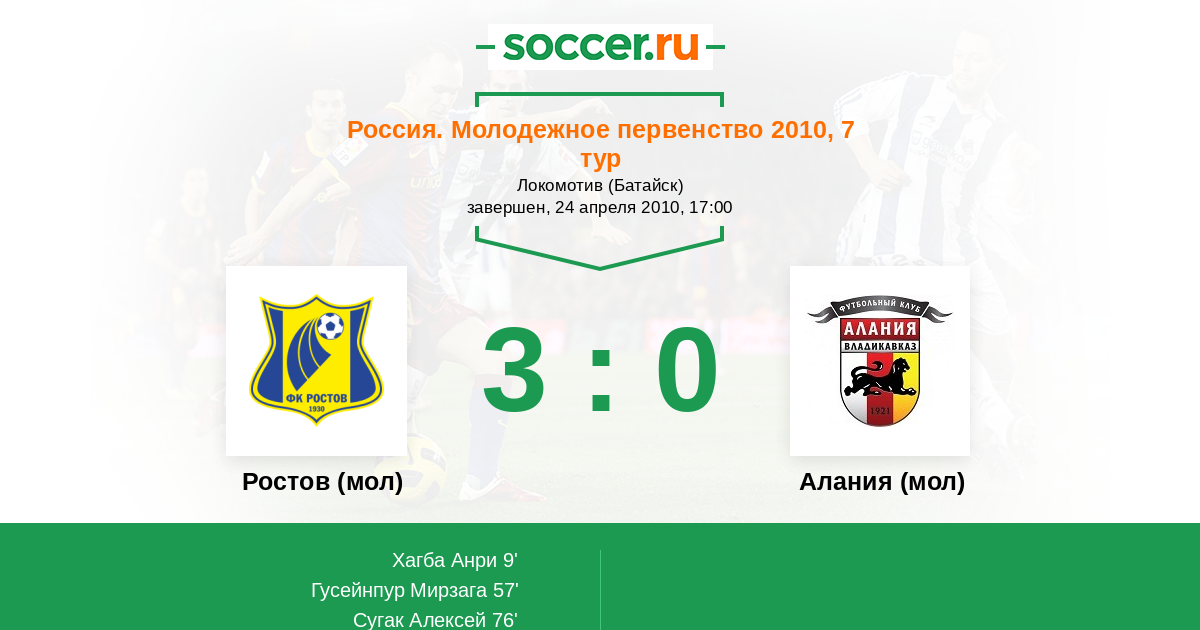 Ростов (мол) - Алания (мол): обзор матча 24 апреля 2010