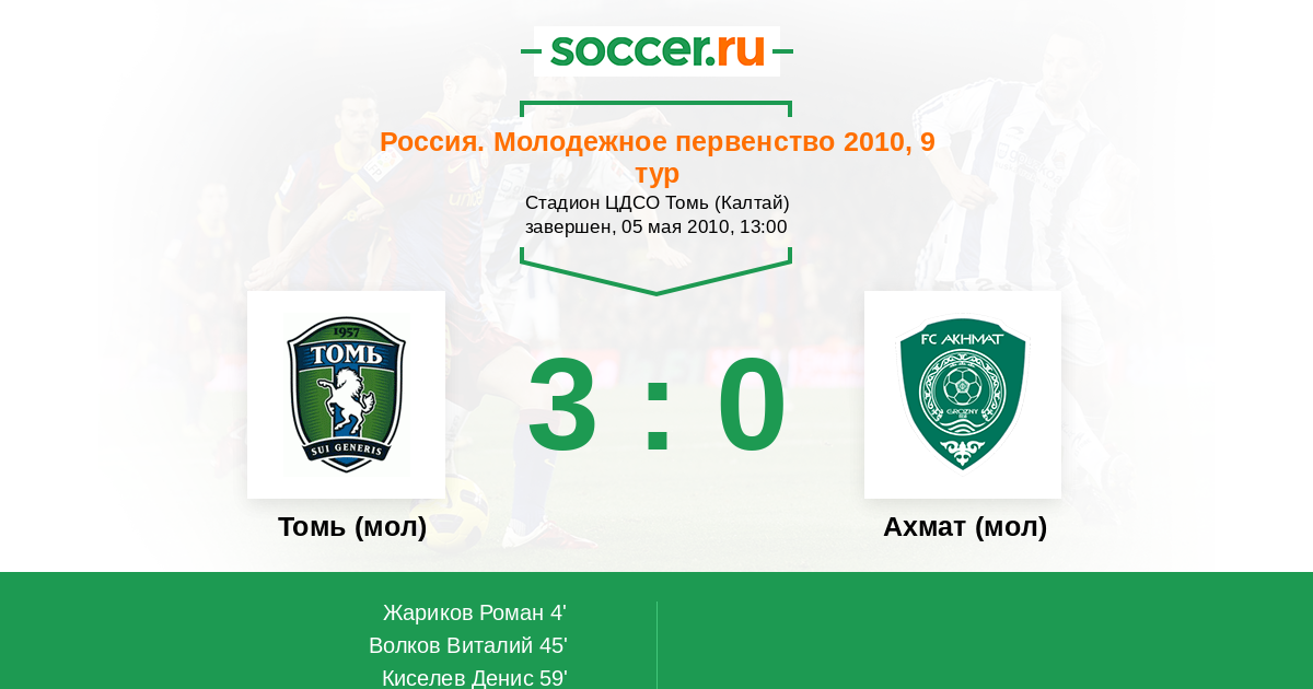 Томь (мол) - Терек (мол): обзор матча 5 мая 2010