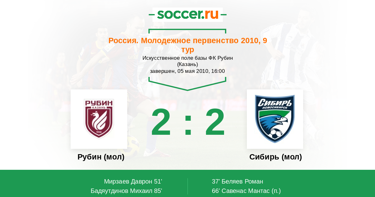 Рубин (мол) - Сибирь (мол): обзор матча 5 мая 2010