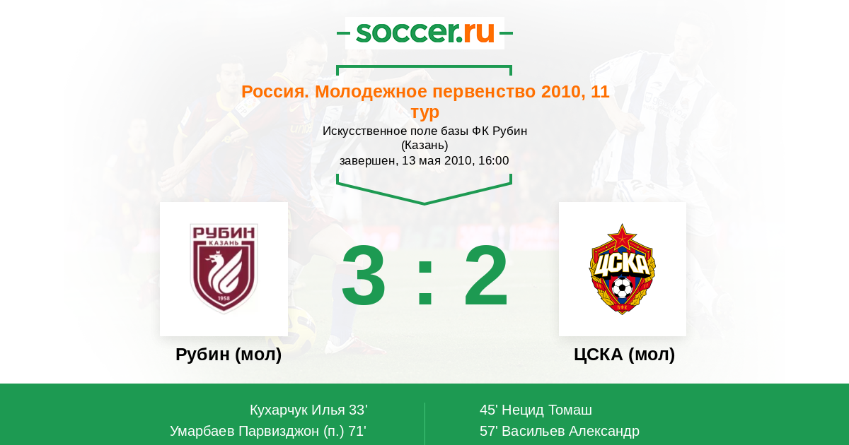 Рубин (мол) - ЦСКА (мол): обзор матча 13 мая 2010