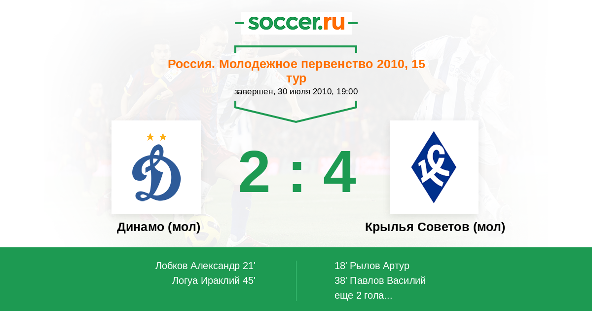 Динамо (мол) - Крылья Советов (мол): обзор матча 30 июля 2010