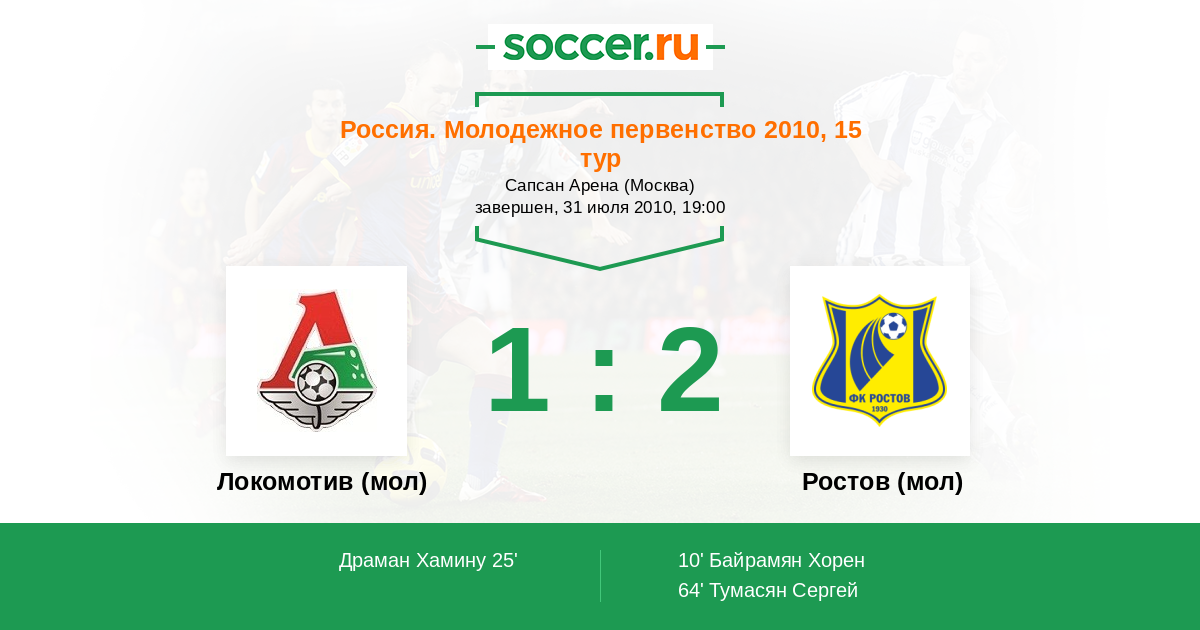 Локомотив (мол) - Ростов (мол): обзор матча 31 июля 2010