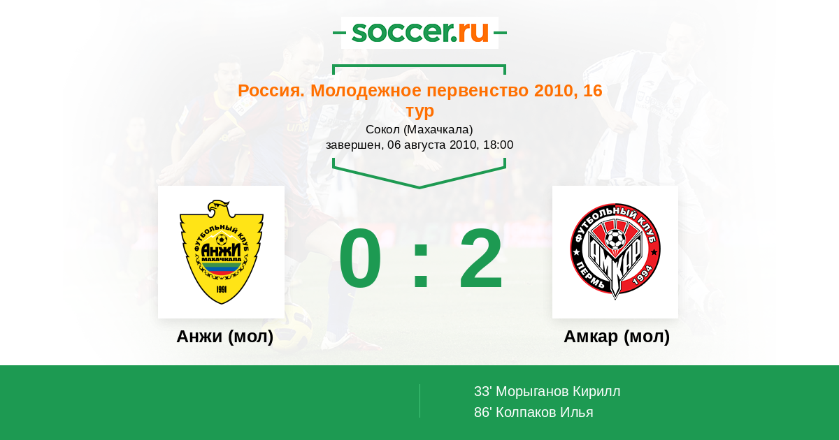 Анжи (мол) - Амкар (мол): обзор матча 6 августа 2010