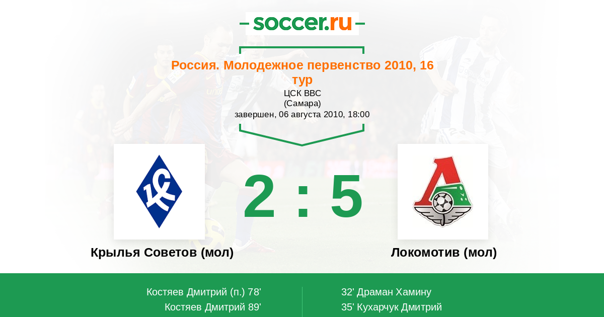 Крылья Советов (мол) - Локомотив (мол): обзор матча 6 августа 2010