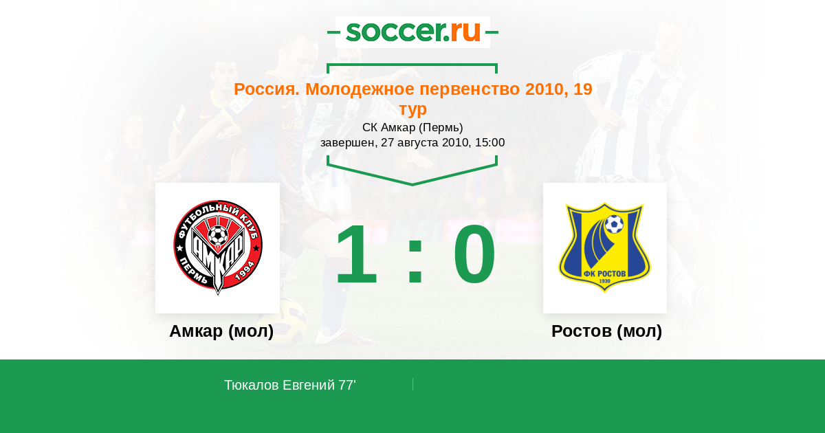 Амкар (мол) - Ростов (мол): обзор матча 27 августа 2010