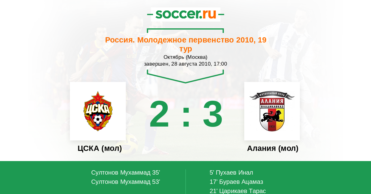 ЦСКА (мол) - Алания (мол): обзор матча 28 августа 2010