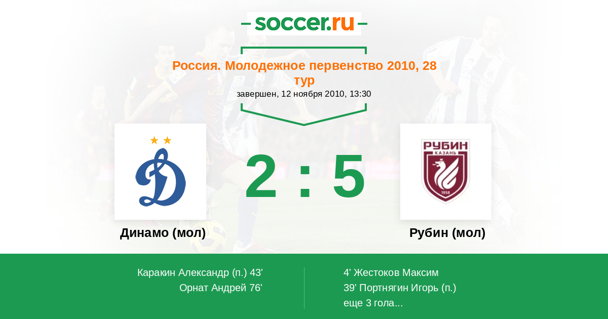 Динамо (мол) - Рубин (мол): обзор матча 12 ноября 2010