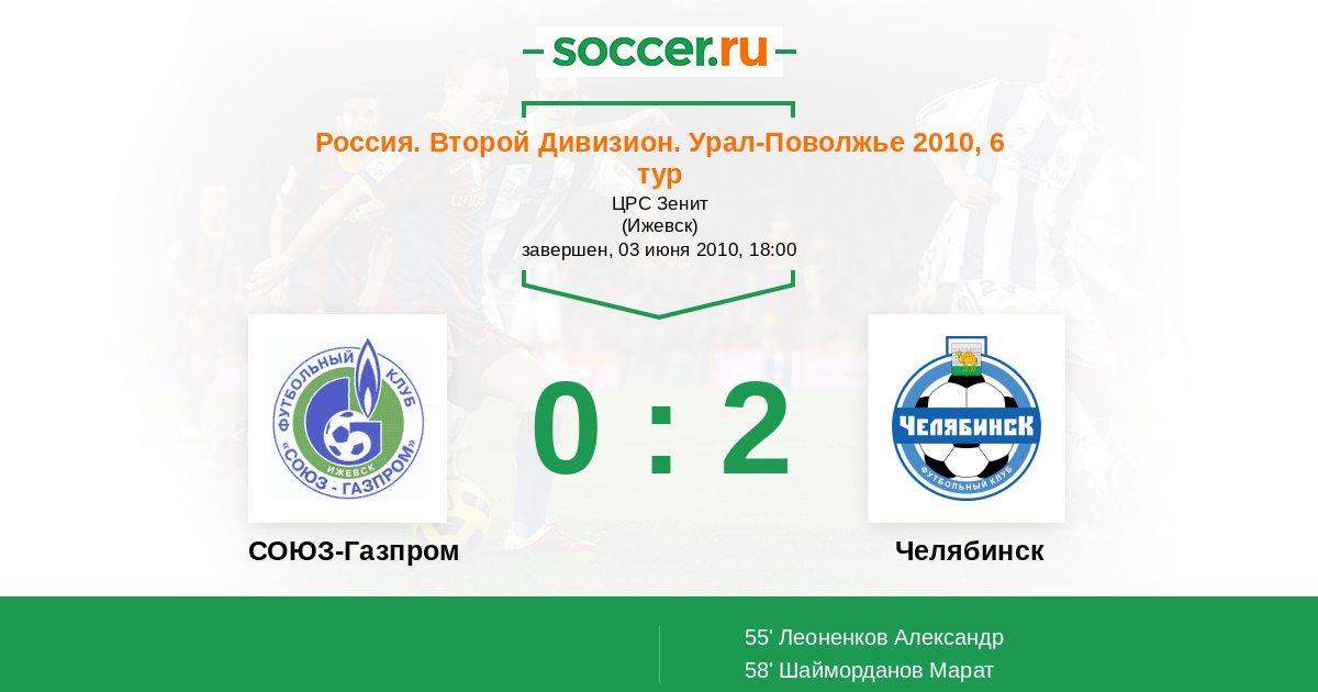 СОЮЗ-Газпром - Челябинск: обзор матча 3 июня 2010