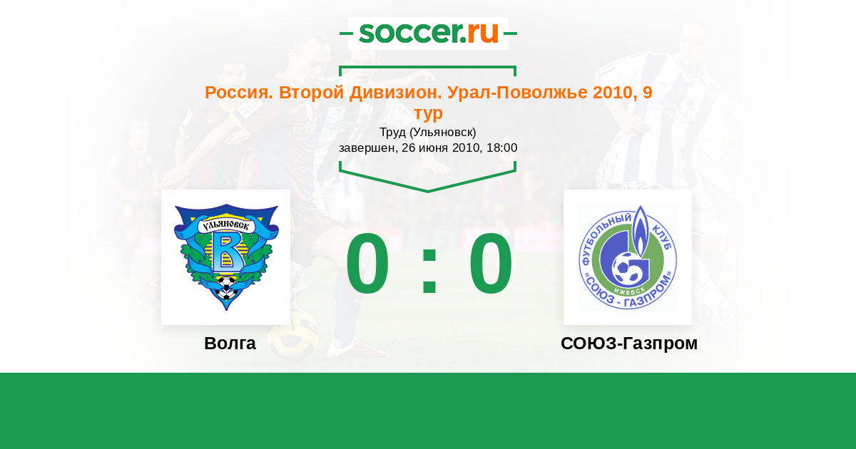 Волга - СОЮЗ-Газпром: обзор матча 26 июня 2010