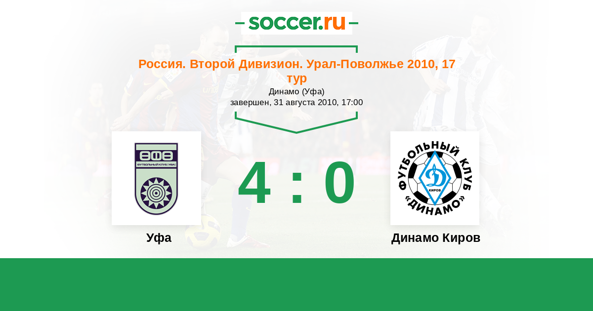 Уфа - Динамо Киров: обзор матча 31 августа 2010