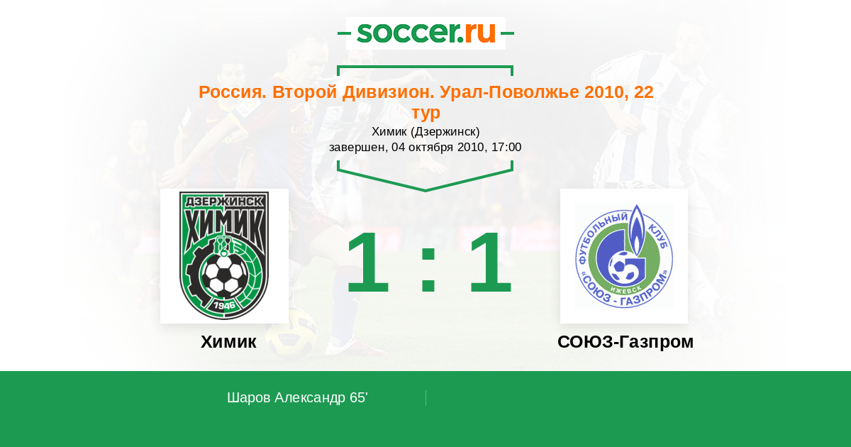 Химик - СОЮЗ-Газпром: обзор матча 4 октября 2010