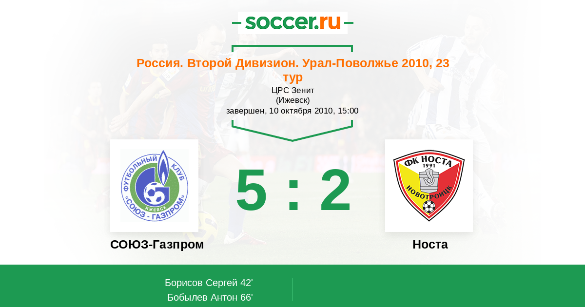 СОЮЗ-Газпром - Носта: обзор матча 10 октября 2010