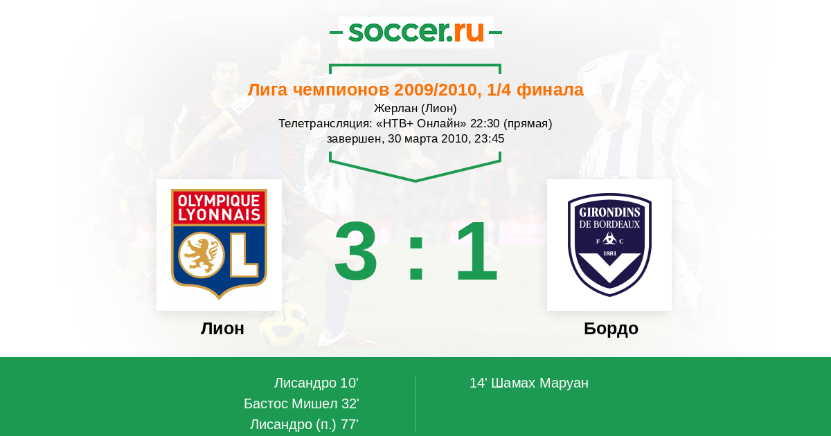 Лион - Бордо: обзор матча 30 марта 2010
