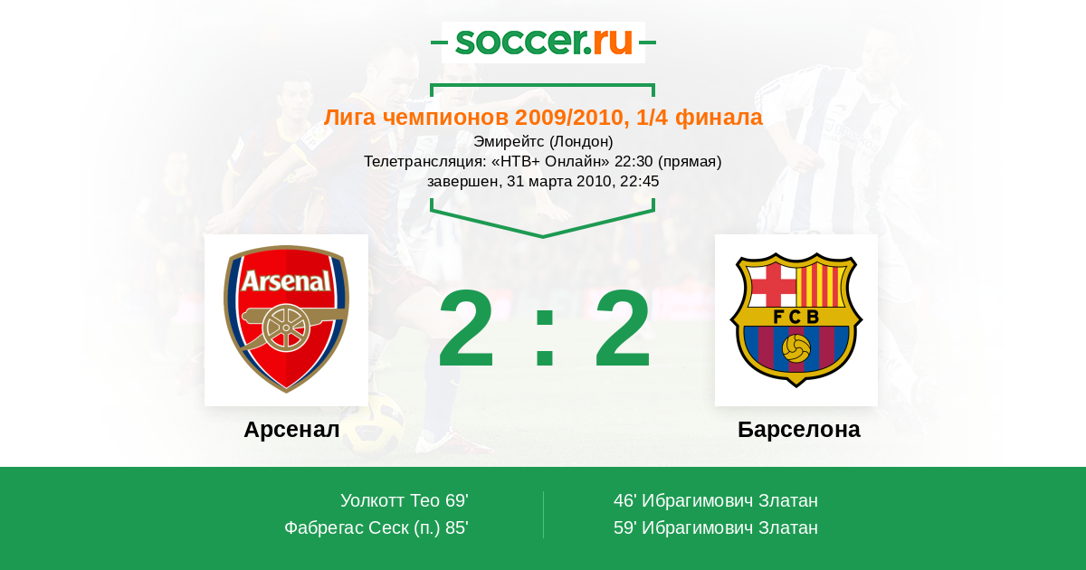 Арсенал - Барселона: обзор матча 31 марта 2010