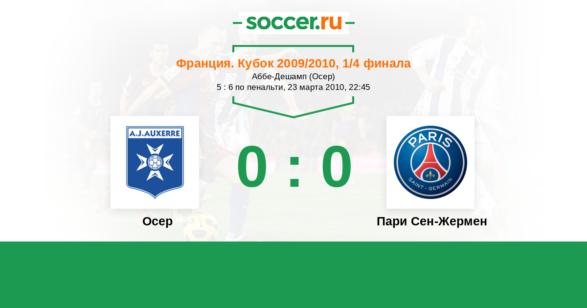 Осер - Пари Сен-Жермен: обзор матча 23 марта 2010