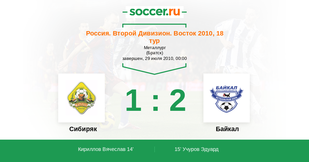 Сибиряк - Байкал: обзор матча 29 июля 2010