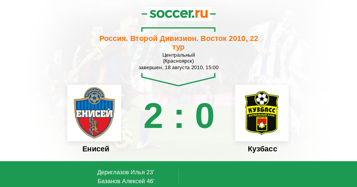 Енисей - Кузбасс: обзор матча 18 августа 2010