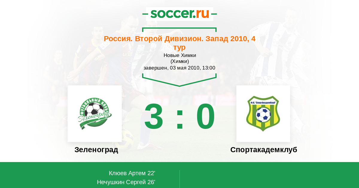 Зеленоград - Спортакадемклуб: обзор матча 3 мая 2010